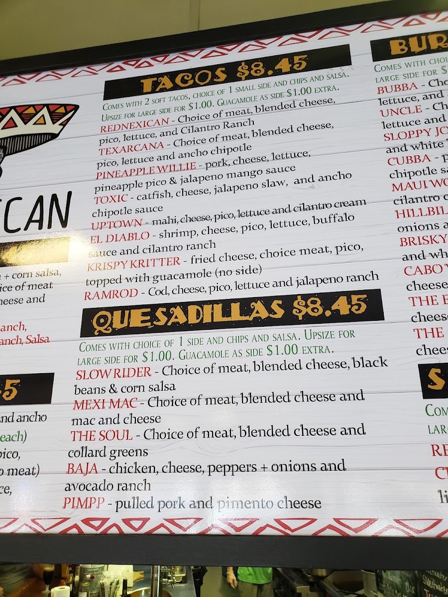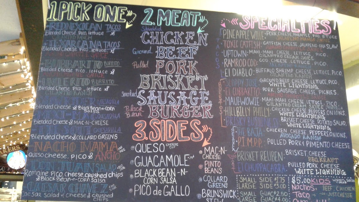 Mac & cheese, queso & white lightening sauce.