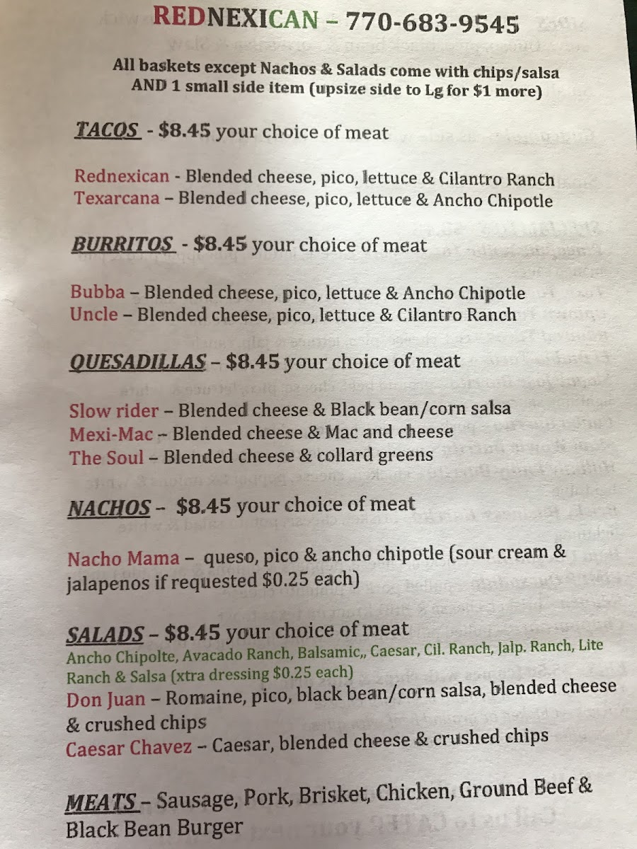 Choice of meat, cheese, pico, lettuce & cilantro ranch.