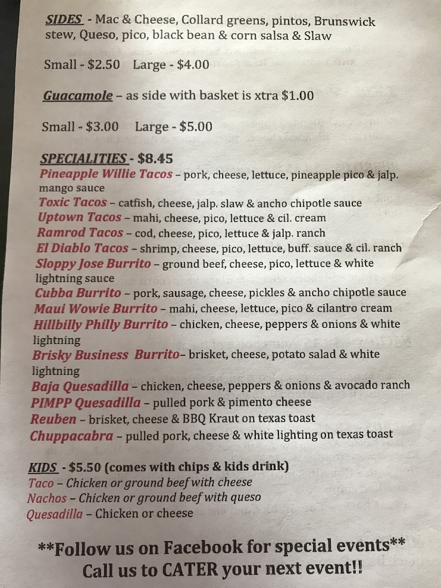 Fried catfish, cheese, jalapeño slaw & ancho chipotle.